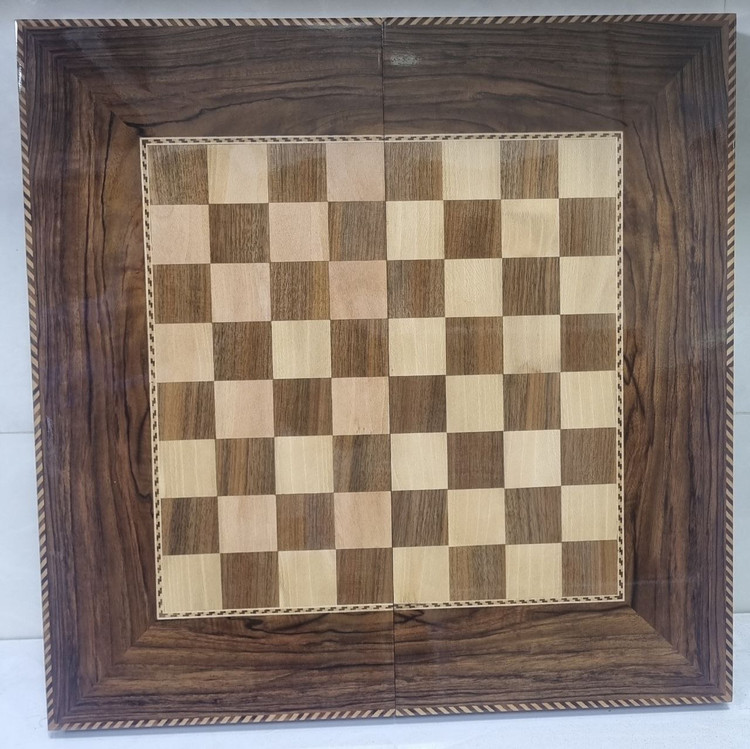 تخته نرد دو بازی: این تخته نرد دو منظوره بوده و پشت تخته نرد با ترکیب چوبهای گردو و گلابی، برای صفحه شطرنج کار شده است.
