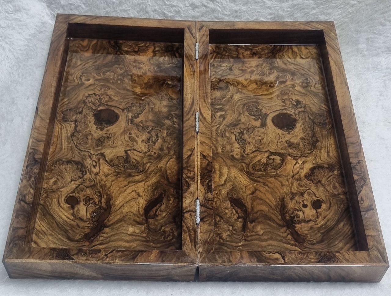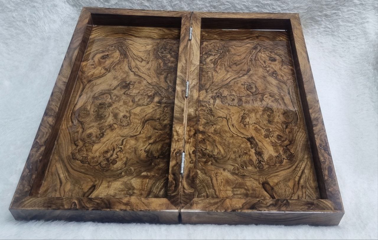 تخته نرد نفیس گره گلدار سیاه گردو با قدمت چوب ۵۰۰ ساله. ابعاد ۵۰×۵۰ سانتیمتر