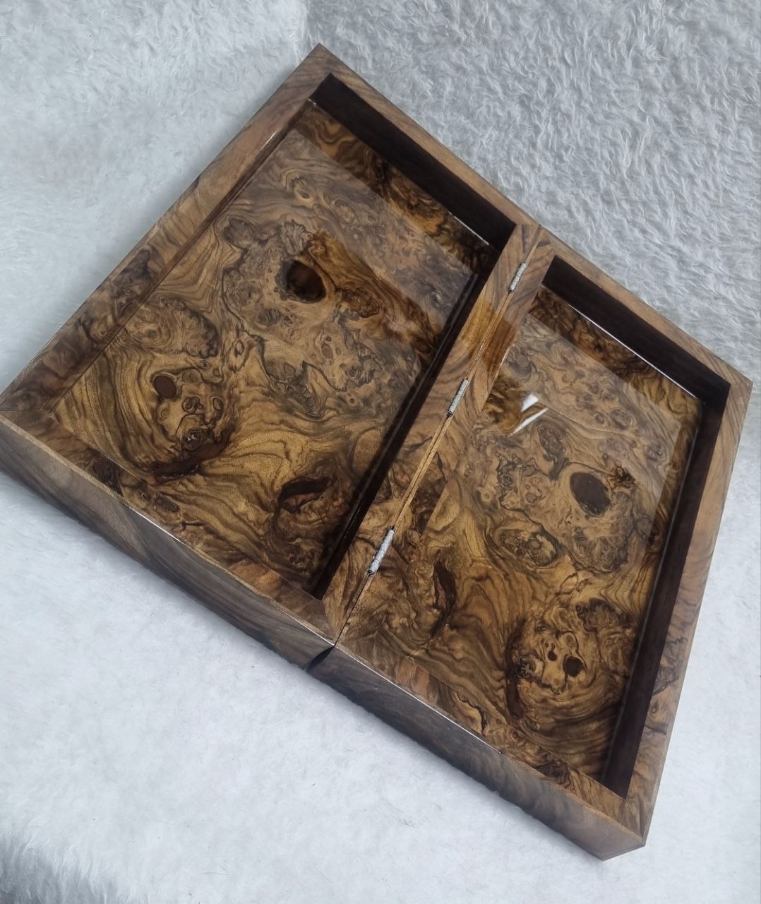 تخته نرد گره گلدار سیاه گردو، جلوهای چشمنواز از اصالت و هنر چوب است. این اثر منحصربهفرد با استفاده از چوب گردوی سیاه با قدمت بیش از ۵۰۰ سال ساخته شده و با ظرافتی مثالزدنی، روح سنت و اصالت ایرانی را در خود دارد. این تخته نرد یک انتخاب لوکس و باارزش برای کلکسیونداران است.