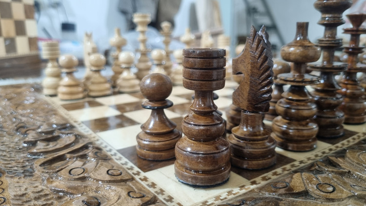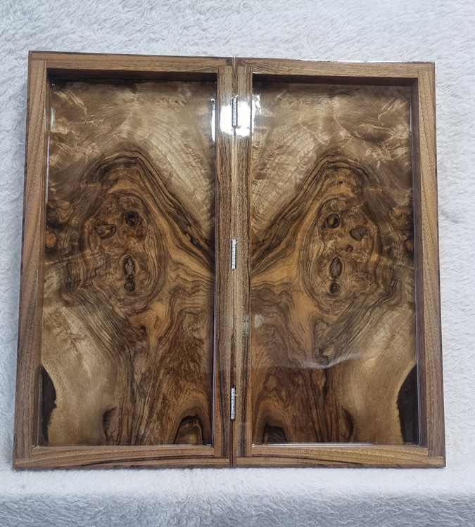 سه لولا مخفی، تمام کار دست ، چوب گردو ، کلاف دور از دروازه کهنه روستا استفاده شده، دارای حاشیه کاری زیبا در دور صفحه شطرنج و لبه ی بیرونی تخته نرد